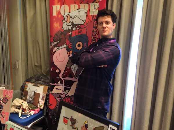 On our first lap we were able to catch up with old friends such as: Community Champion nominee Aaron Rackley, who was there with new Gallant and Amos books as well as the excellent, Make Comics With Springworth which was making it’s debut; the unmissable Steve Tanner of TimeBomb Comics who was excited about a new Clockwork Cavalier story appearing in the ComicScene annual (as well as more Flintlock coming soon); the wonderful Russell Olson (who we met for the first time at last year’s event) who was still riding high on the success of the Gateway City trade paperback, and making plans for the year ahead; the Horde Comics team who were celebrating the launch of their new one-shot Revenant with it’s excellent Andy Bloor cover (full review coming soon!); Sarah Milman whose wonderful NPC Tea had a new issue that we had not seen in the flesh before, and who was being regularly wound up by her neighbours Emily Owen and Gav Mitchell – who we’d also not seen since last year and was great to catch up with them and hear about new projects and also canine antics.