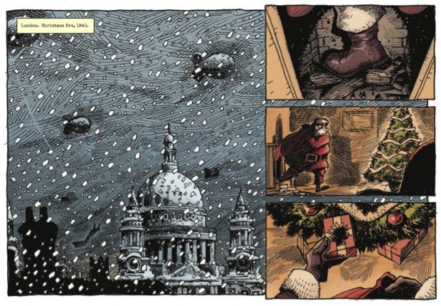 BD: Yeah, it went through a few drafts. In fact, the first draft had Reggie and Peter as background comic relief characters. It was an artist friend, Roger Mason, who read it and pointed out that their relationship was the most interesting thing in it. That feedback led me to bring them forward and really focus on them as the heart and soul of the book. I don’t really do sentiment that much in my stories, but I knew that if it was going to be a Christmas book it did really have to have a bit of sentimentality in it – “fascism is bad, kids!” doesn’t really count. I’m really glad you think we judged it right, for me I was just going on instinct!