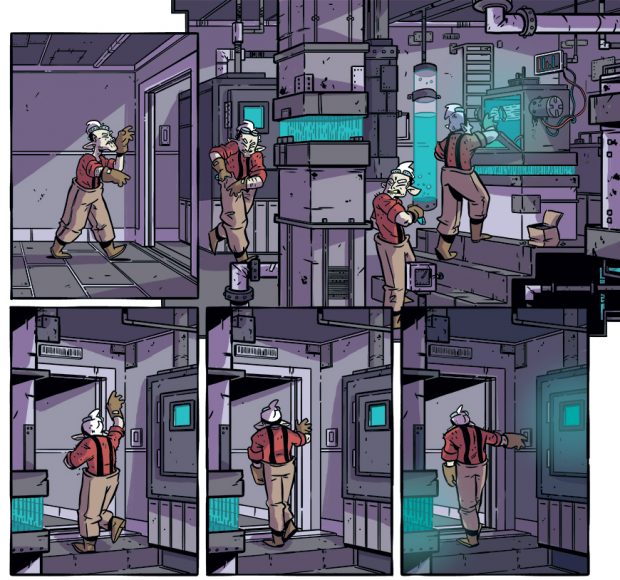 CB: As I said previously, a lot of the emotional punches in the story are from Michael’s original script. Had I been left to my own devices the comic would likely be full of space suit fart jokes and little else. My attitude toward storytelling has changed a lot since starting this series, and with each new issue we seem to be trying to outdo each other by coming up with deeper storylines and more intricate plot points. It’s come a long way from the original space farce I had planned.