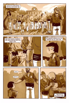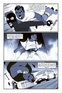 Leo: To begin with, everything was going to be black and white and we encouraged the artist to throw in some tones to help make things that much better looking. The one color shading technique is actually all Eric Grissom and Will Perkins. When they sent us their short, it was done up with the sepia tone that is has now. Ricardo and I both really liked the look of it, but then had to decide whether to make all the stories have color shading or to make their story black and white. Obviously, color won out.