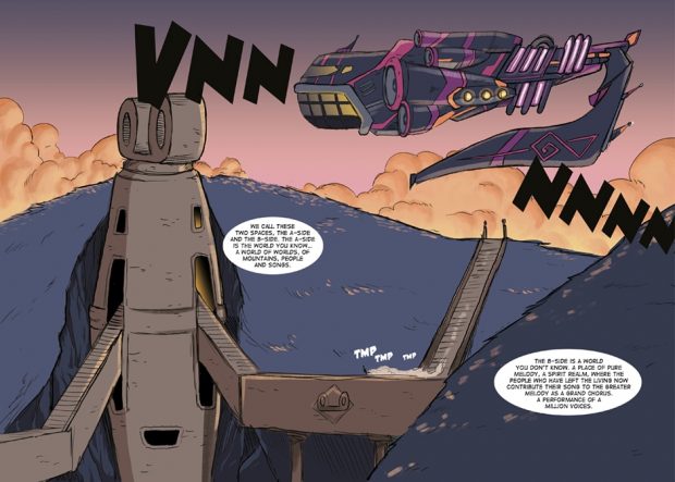 Nich Angell: Its all about wanting to build a bit of community and engagement around the comic, and to make it more accessible for anyone who wants to read it. 7STRING wasn’t born as a webcomic but I feel it suits the transition. Its an opportunity to get to new readers who are used to reading their comics online and don’t necessarily attend conventions which has been the biggest vehicle for getting 7STRING out there up until now. And with platforms like Tapastic, which sends you a notification when a new episode goes up, we are in a golden age for digital comic reading! As for Kickstarter, ABSOLUTELY! I will run a kickstarter for the printing of the graphic novel to collect Volume 3 when it has serialised online. And Comixology will continue to get its track by track updates. Nothing will change except for the addition of the weekly updates!