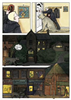 This utterly charming book has a very British, very gentile feel to it as it lilts and ambles through the story. It evokes memories of classic British cartooninsts like Posy Simmonds or Raymond Briggs and feels a very accomplished and confident work for a debut. Set in a fictional Northern town (presumably Lancashire as that is where the Rickards are from?) it has that slightly Wallace and Gromit/Last Of The Summer Wine vibe to it, that is quintessentially British and very ‘northern’. But that makes it sound almost cartoonish, which it isn’t, as it still has a depth and an edge to it, but without it being gritty and too ‘kitchen sink’.