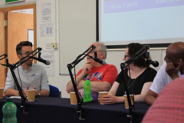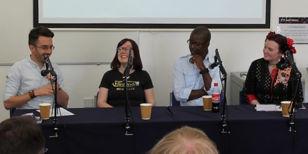 The opening panel saw Steve Tanner, and artists Sally Jane Thompson and Ade Brown discuss their journey into comics which set the tone for the kind of day ahead. Moderator Jon Lock posed thoughtful and insightful questions, directing them to discuss their early days that shaped them, such as Sally’s formative years reading Archie in Canada through to Ade’s love of Transformers, as well as their thoughts on crowd funding and what it is to break into comics. Indeed this subject of ‘breaking in’ was set to be a recurring theme throughout the day, as would the positive nature of the UK indie community which Steve described as like tapping an oil well only for it gush forth once you have broken in. But also like a cool party you are on the outside of but that you need to brave enough in order to truly embrace the scene (both good and bad)!
