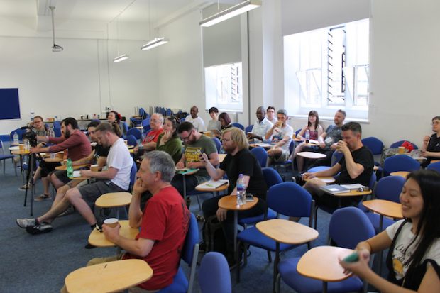It may have been the venue, but it felt like we had graduated to the higher education of comic conventions, and entering the lecture hall, complete with rows of chairs and fold out tables this felt very much like a mix of work and education. Which after all is what we see there for. The reason Jon set this event up in the first was to create a place for creators to talk with their peers and he reiterated that to us when we met him before the start of proceedings. He went on to mention how this was designed to fill a gap in the convention panel experience between the expert big name guests and the beginners panels we are used to and the language we heard throughout the day certainly reflected this intermediate or even semi pro approach which the summit was aiming for.